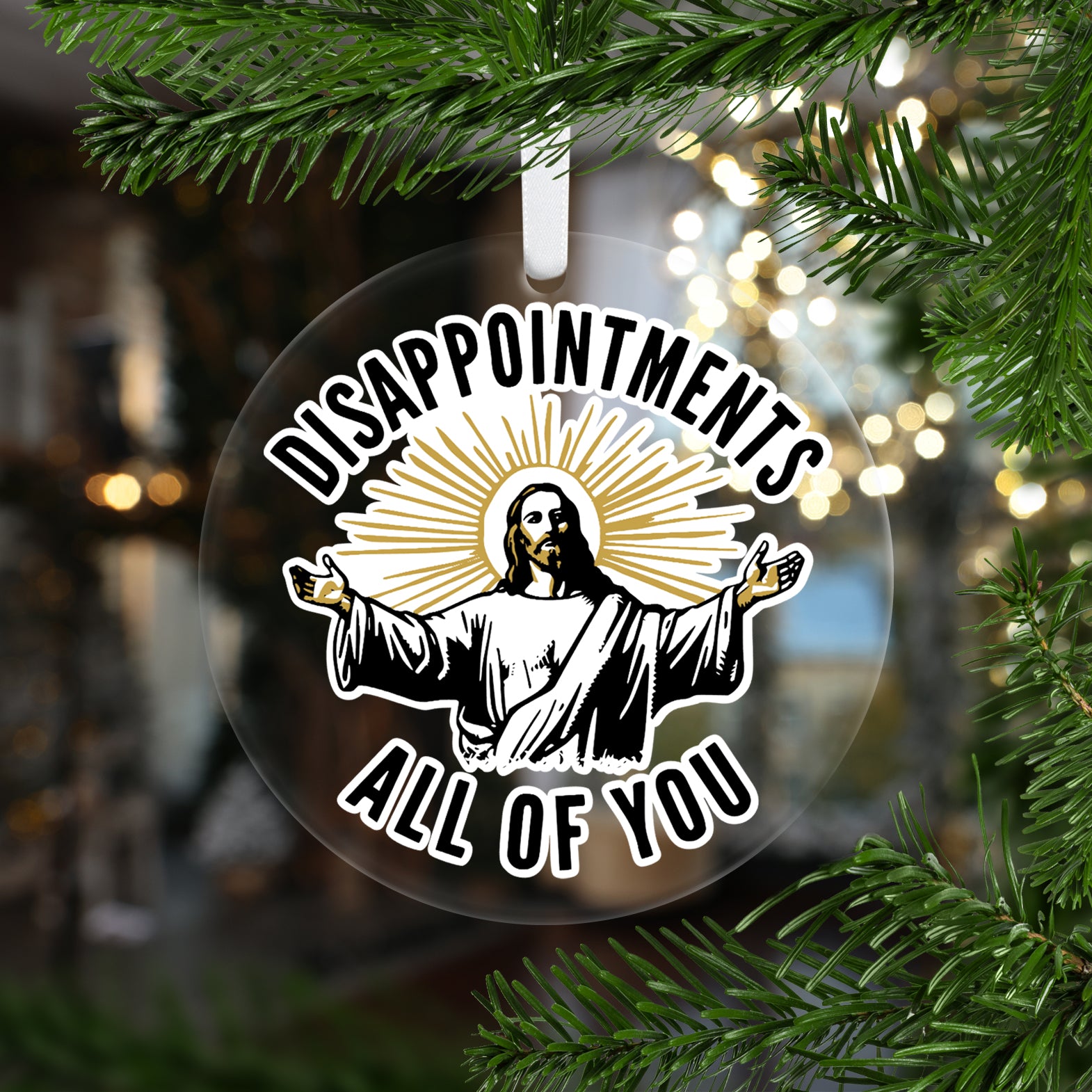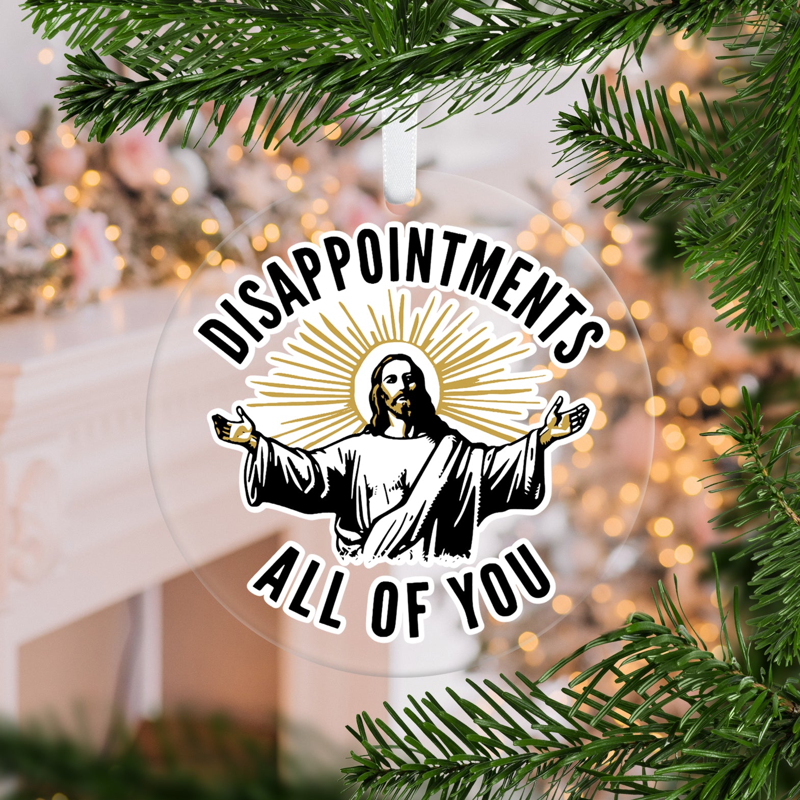 Looking for a holiday decoration that brings laughs instead of solemn vibes? This irreverent ornament is made for it. Featuring a classic religious image paired with the hilarious phrase “Disappointments – All of You”, it’s the perfect mix of snark and seasonal cheer.